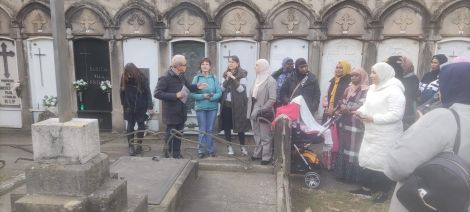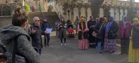 Alumnat de diversos programes de Càritas Garrotxa han visitat aquest dijous el cementiri municipal d'Olot. Un espai que acull les despulles de ciutadans respectant les seves creences i cultures.