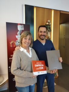 En aquesta vuitena edició han volgut destacar el poder del somriure, omplint la recepció amb fotografies de l’equip i pacients mostrant els seus millors somriures. El Dr. Santiago Cervera, director mèdic, ha convertit aquest gest en una col·laboració econòmica entregada a Sílvia Padrós, qui ha lliurat la placa d’Empresa amb Cor. A més, ha sigut la mà innocent en el sorteig del lot gurmet.